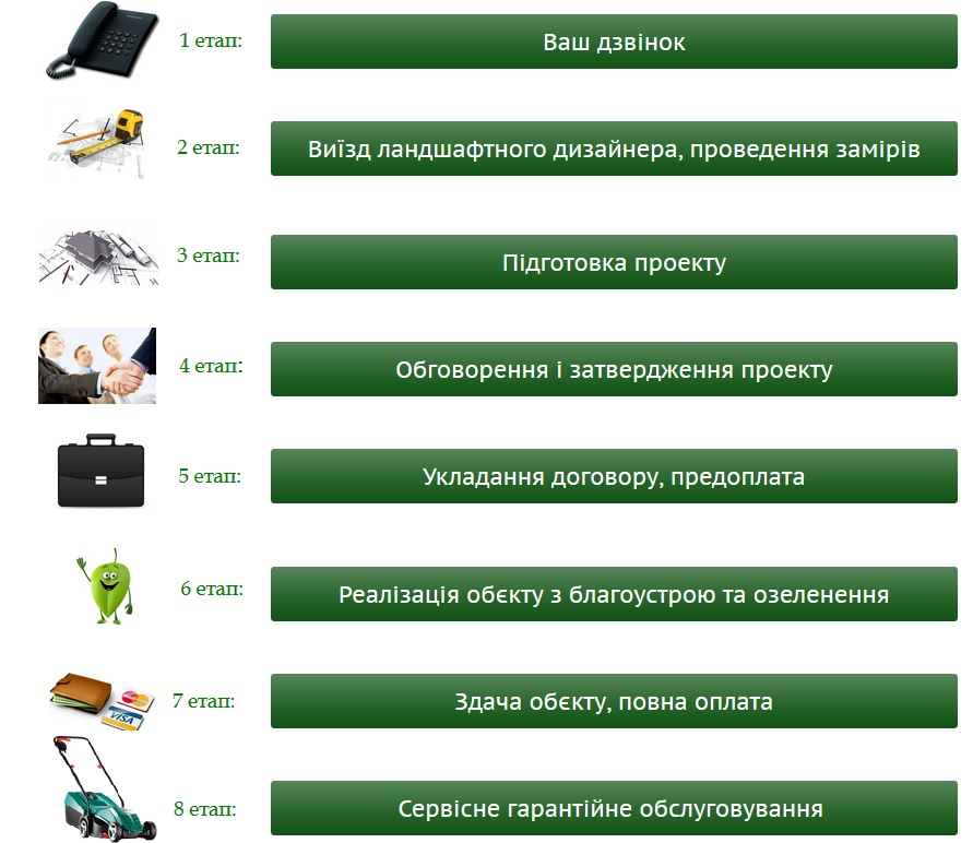 • Продаж супутніх товарів (декоративний камінь, кора, мульча, агроволокно і .д.)
